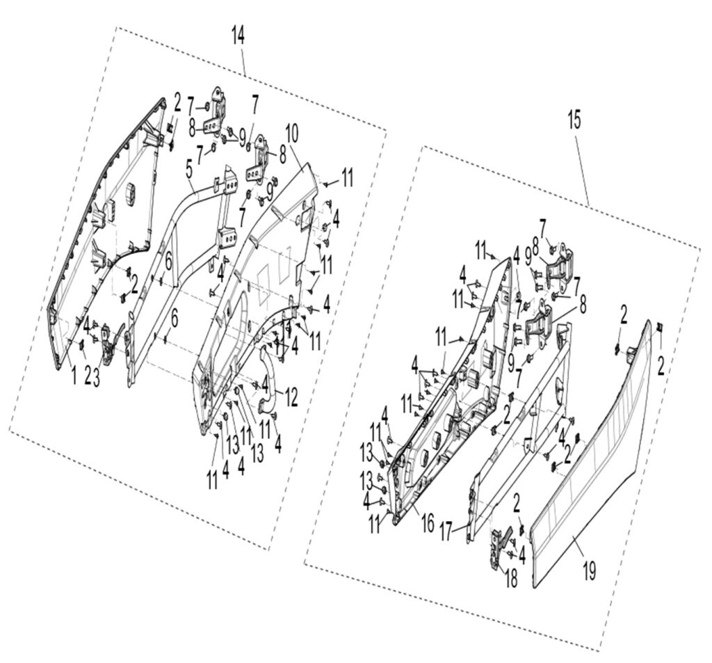 | 14 | S05-C000125-000-00 | RIGHT DOOR COMBINATION (GREY) | 1 | Price excl. VAT € 268,68 Price incl. VAT € 325 |