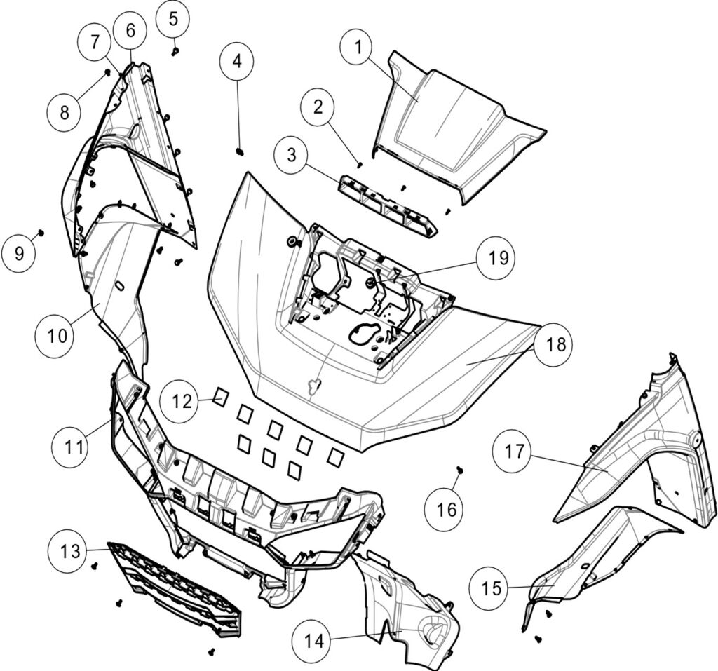 | 13 | U01-H114200-0B0-00 | FRONT GRILL | 1 | Price excl. VAT € 14,92 Price incl. VAT € 18 |