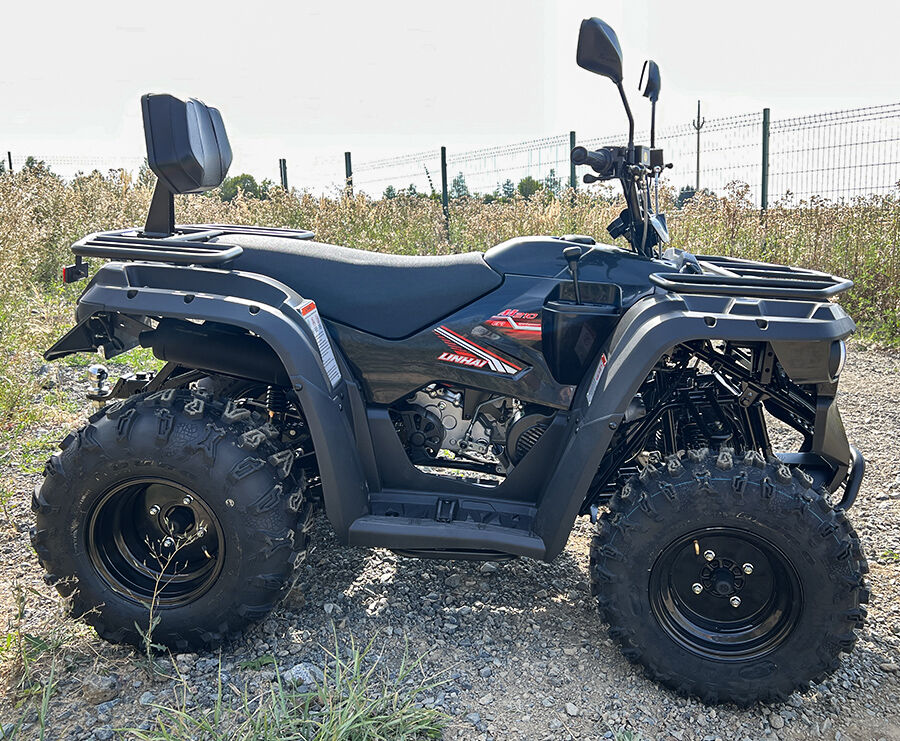 Compact utility / recreational ATV, T3b, air-cooled single cylinder 177,3 cm3, automatic transmission F/N/R, 2x4 drive, front double A-arms, rear swing arm + solid axle, 3x hydraulic disc brake, front bumper, steel racks front and rear, LED rear lights, steel wheels