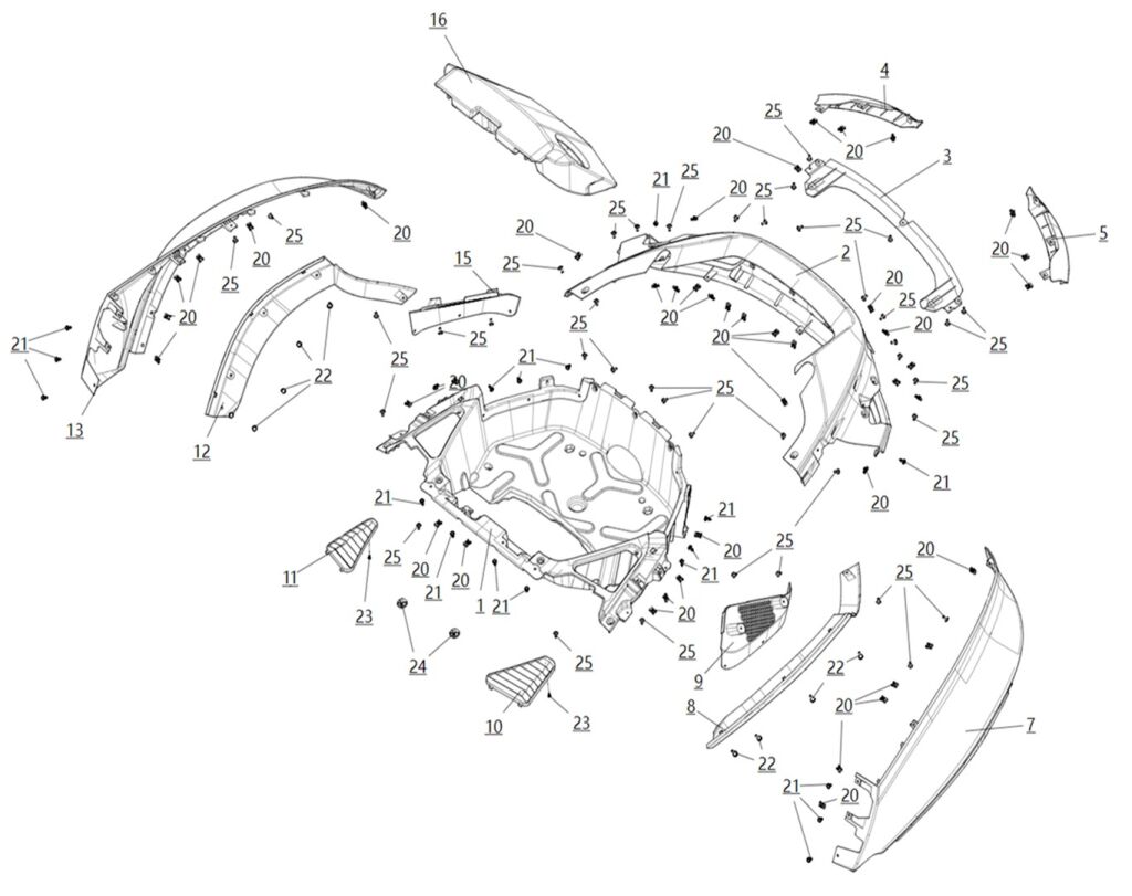 | 16 | S03-H118000-000-01 | REAR STORAGE BOX ASSY | 1 | Price excl. VAT € 63,39 Price incl. VAT € 77 |
