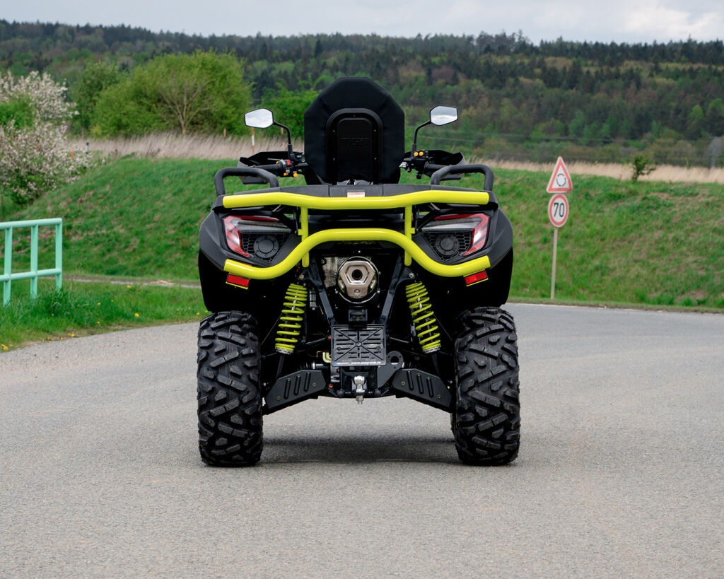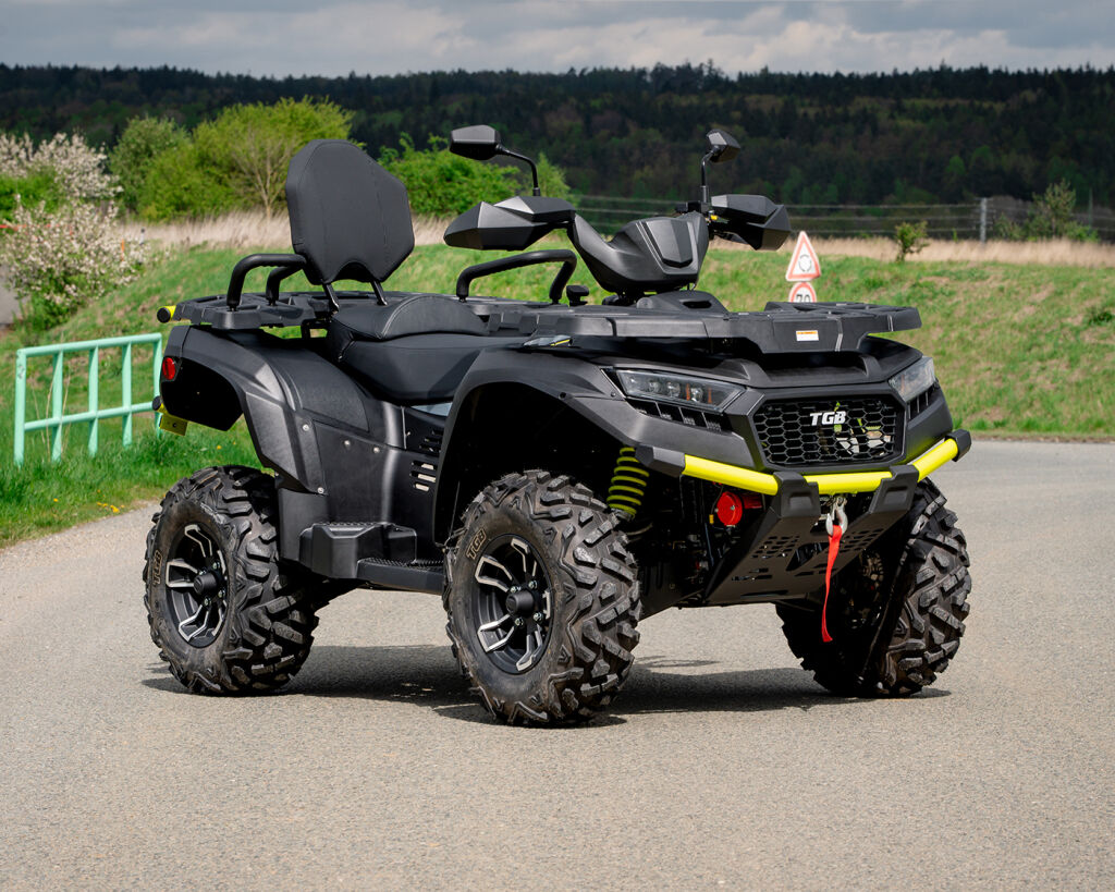 Utility / recreational ATV with LED Matrix headlights and Full-LED lighting, T3b, color TFT display with bluetooth (BT) smartphone connection, new 12" aluminum wheels, long wheelbase, 3-mode EPS power steering, liquid-cooled single cylinder 561 cm3 EFI, revised automatic transmission L/H/N/R with engine braking, 2x4 / 4x4 with front and rear locking differentials, 4x hydraulic disc brake, independent IRS double A-arms suspension front and rear, front bumper, composite rear racks front and rear, hitch ball, 3000lbs winch, LED Matrix headlights, Full-LED lighting, 12V power outlet